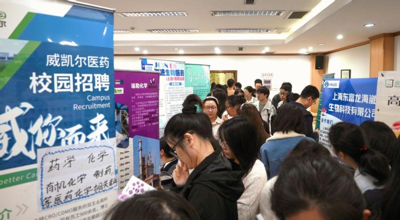 为深入推进高校毕业生就业工作,搭建校企精准对接平台,助力毕业生高质量充分就业,4月16日,华东理工大学化学与分子工程学院、生物工程学院、药学院联合举办2026届毕业生化学与生物医药春季专场招聘会。来自化学化工、生物医药、医疗健康、新材料等领域的近60家行业优质企业齐聚校园揽才,校企双方深度交流、协同发力,共促2026届毕业生高质量就业。